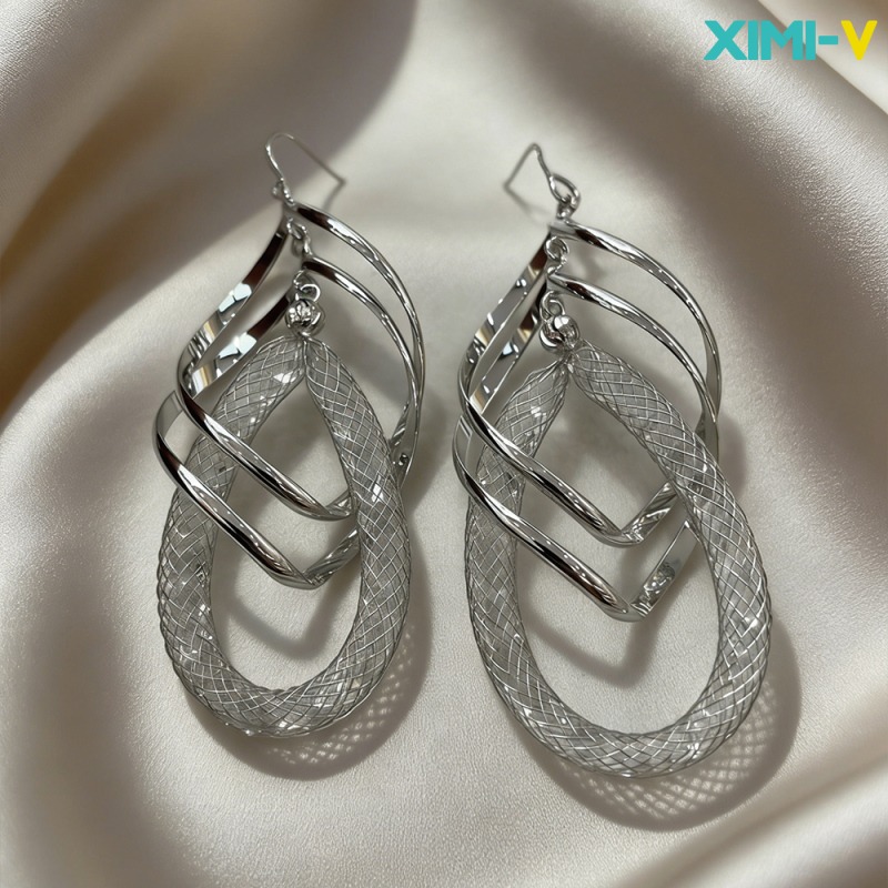 These XIMI-V statement earrings are twisting into the final sunset like silver ribbons that decided to party instead of wrapping presents!
