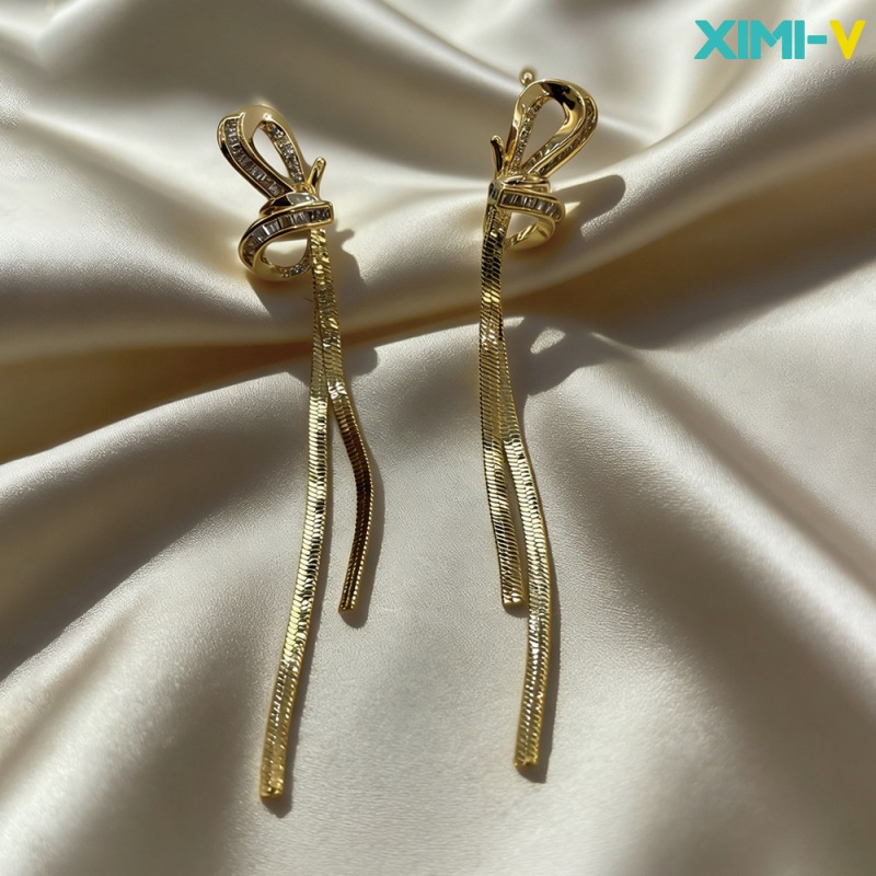 02 XIMI-V New Year Bowknot Statement Tassel Earrings